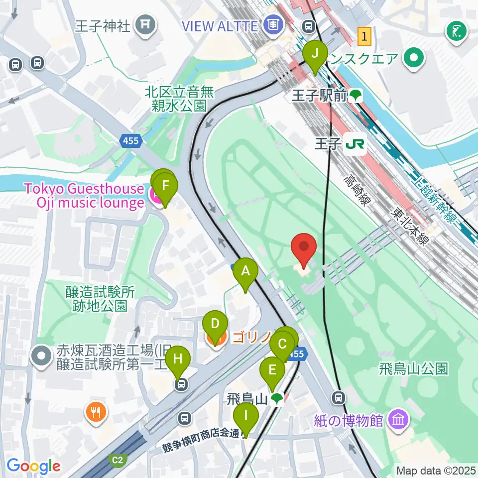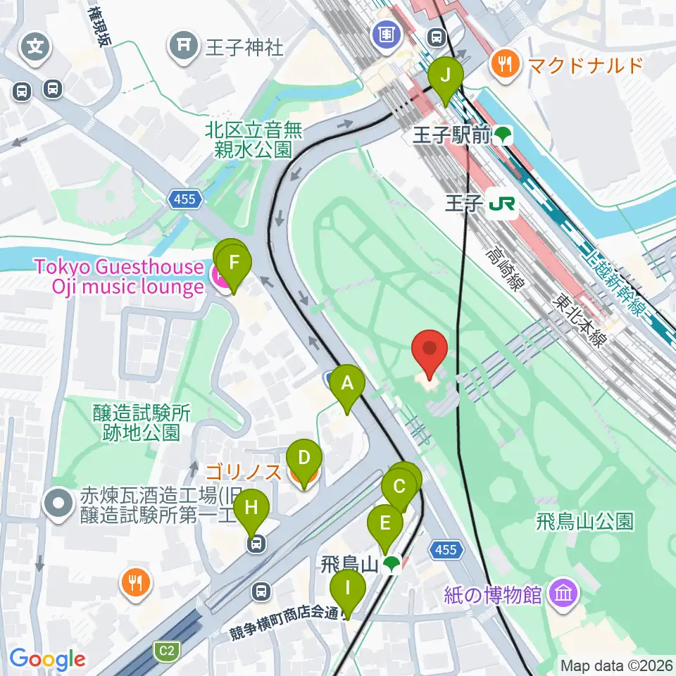 飛鳥山公園野外ステージ周辺のファミレス・ファーストフード一覧地図
