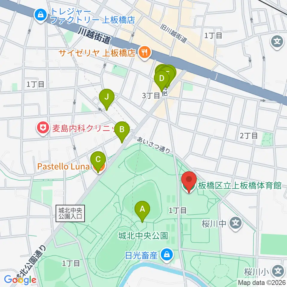 上板橋体育館周辺のファミレス・ファーストフード一覧地図