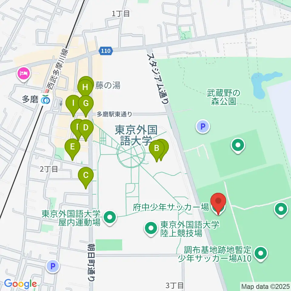 調布基地跡地暫定少年サッカー場周辺のファミレス・ファーストフード一覧地図