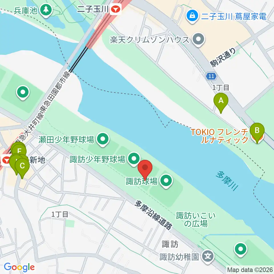 諏訪球場周辺のファミレス・ファーストフード一覧地図