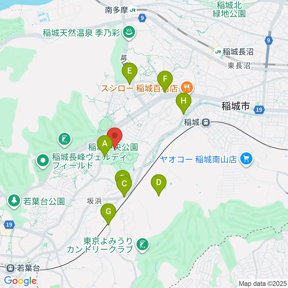 稲城中央公園総合グラウンド周辺のファミレス・ファーストフード一覧地図