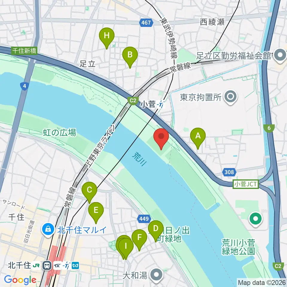 五反野野球場周辺のファミレス・ファーストフード一覧地図