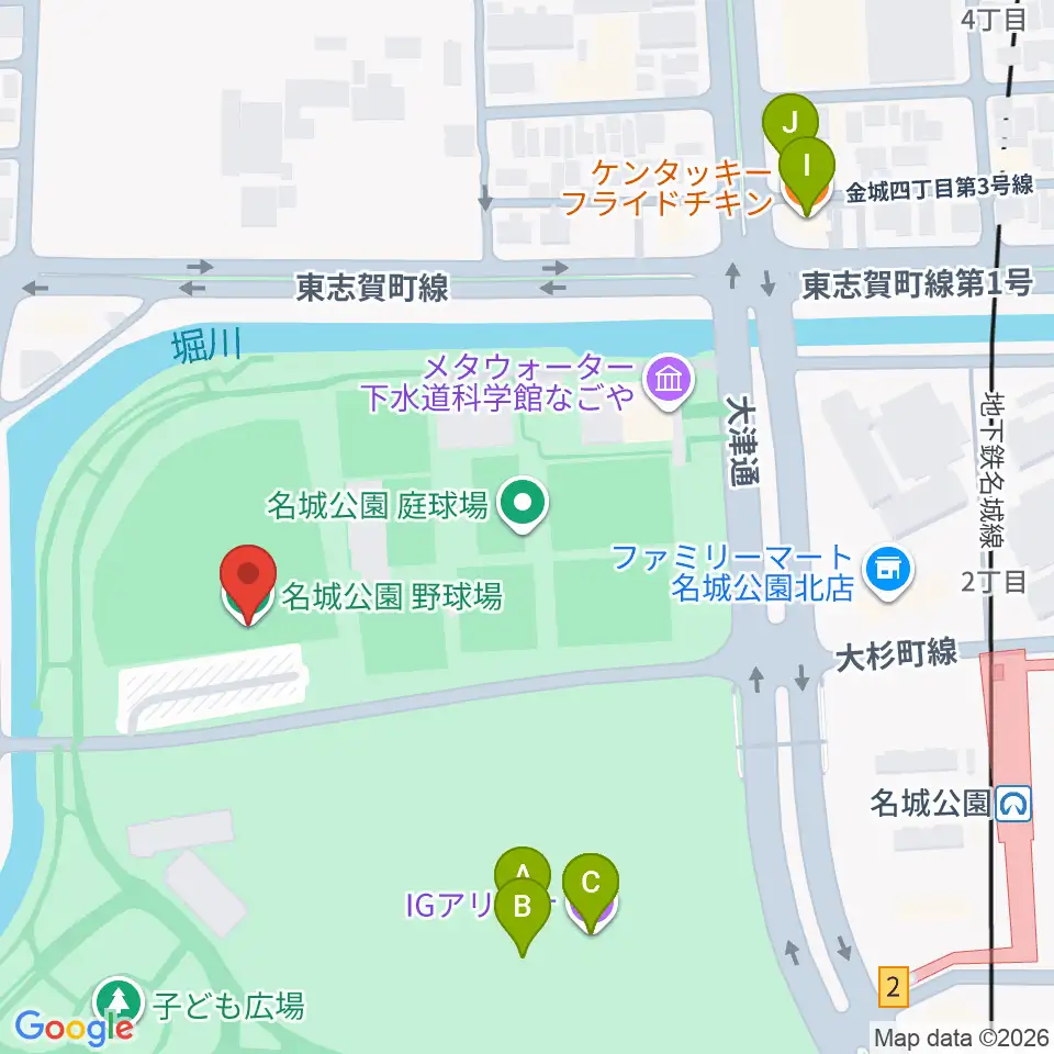 名城公園野球場周辺のファミレス・ファーストフード一覧地図