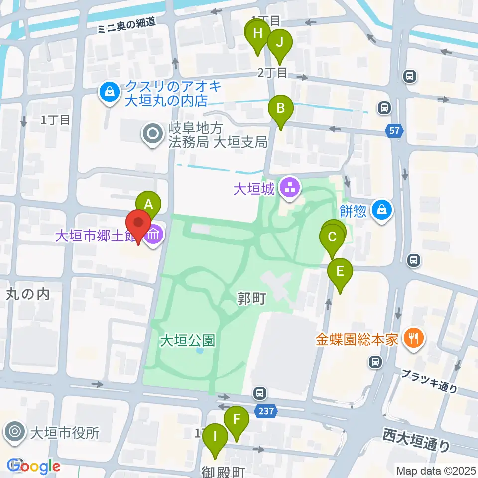 大垣市郷土館周辺のファミレス・ファーストフード一覧地図