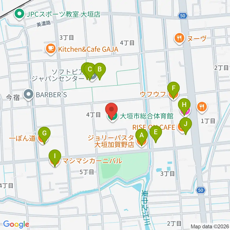 大垣市総合体育館周辺のファミレス・ファーストフード一覧地図