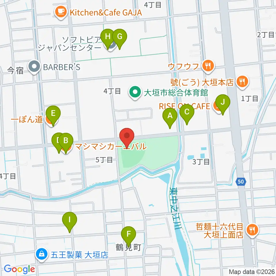三城公園ソフトボール場周辺のファミレス・ファーストフード一覧地図