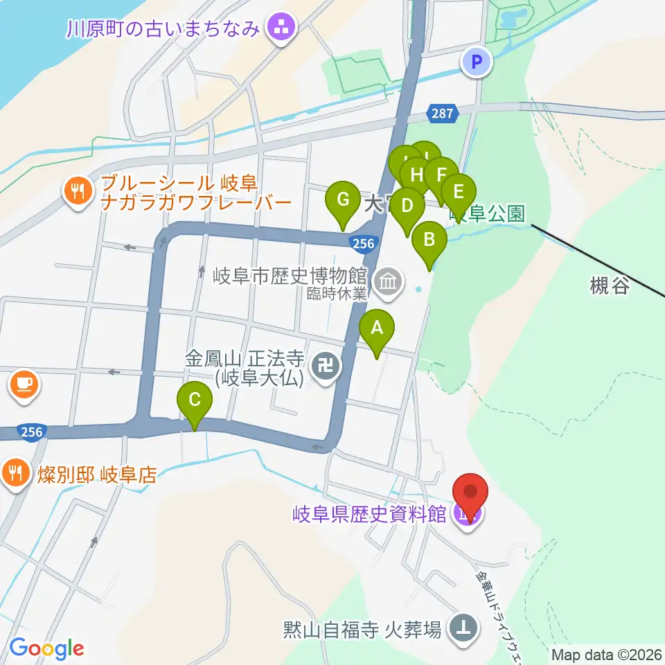 岐阜県歴史資料館周辺のファミレス・ファーストフード一覧地図