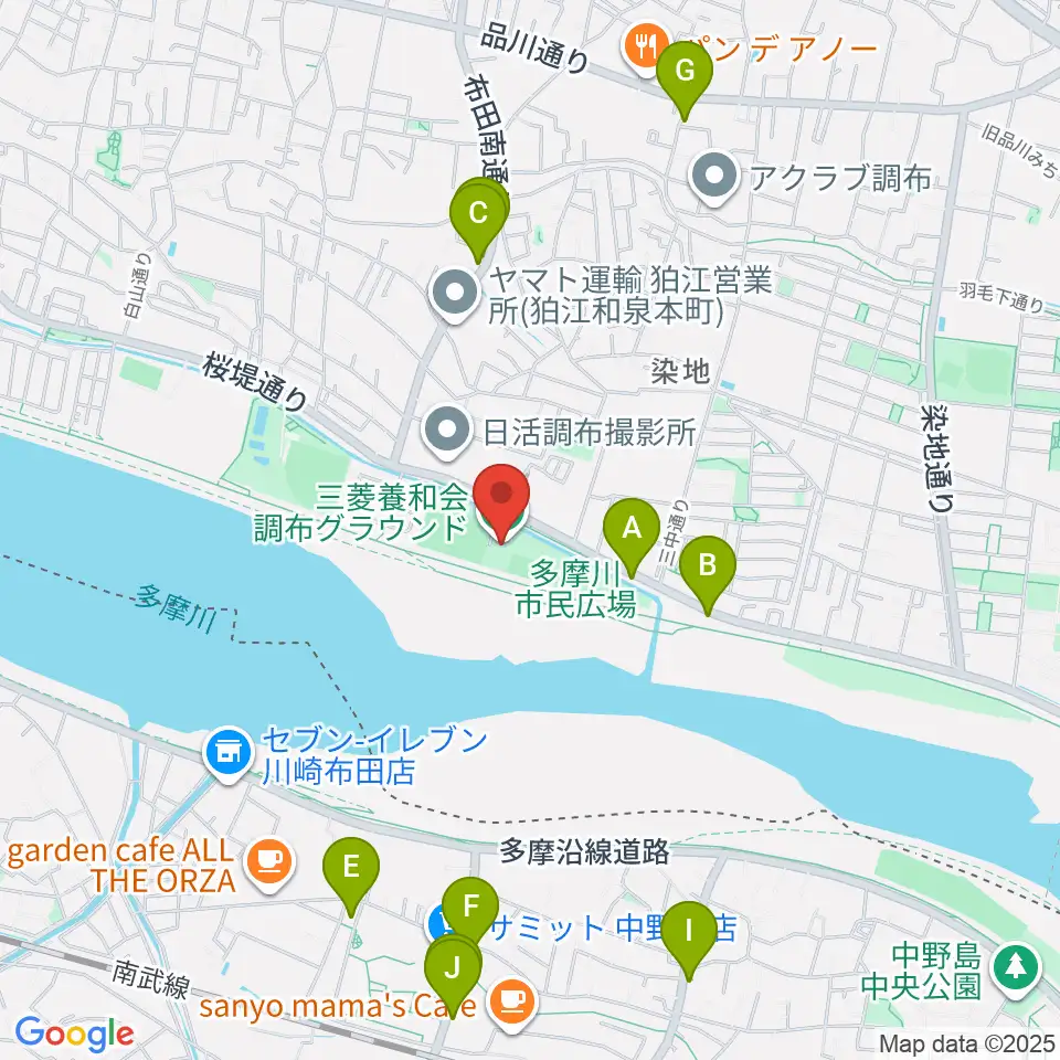 三菱養和会 調布グラウンド周辺のファミレス・ファーストフード一覧地図