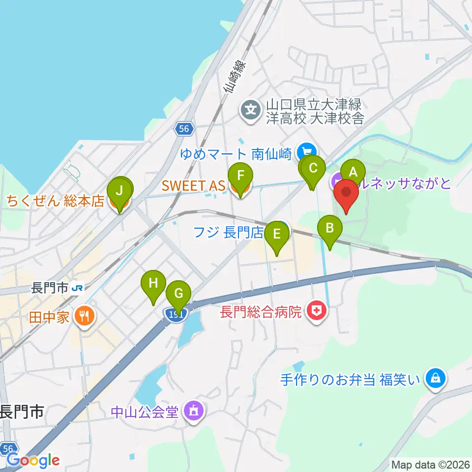 ながと総合体育館周辺のファミレス・ファーストフード一覧地図