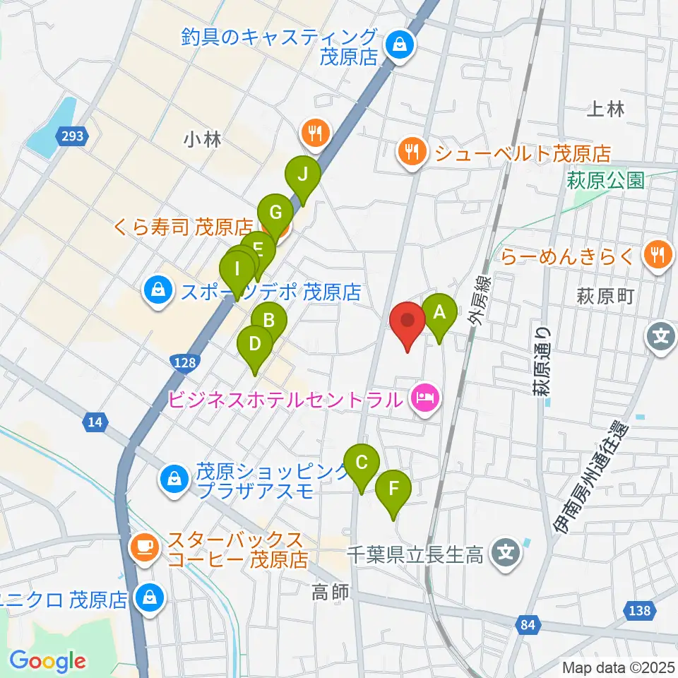 茂原市市民体育館周辺のファミレス・ファーストフード一覧地図