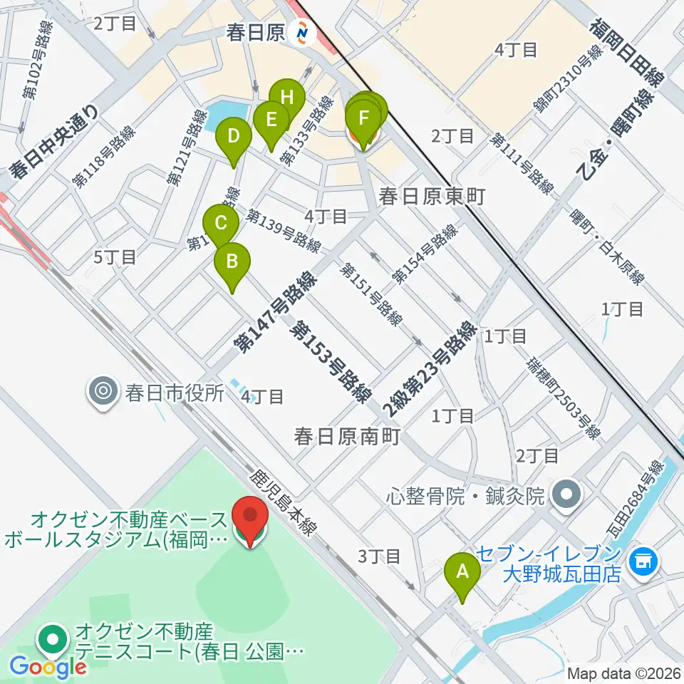 オクゼン不動産ベースボールスタジアム周辺のファミレス・ファーストフード一覧地図