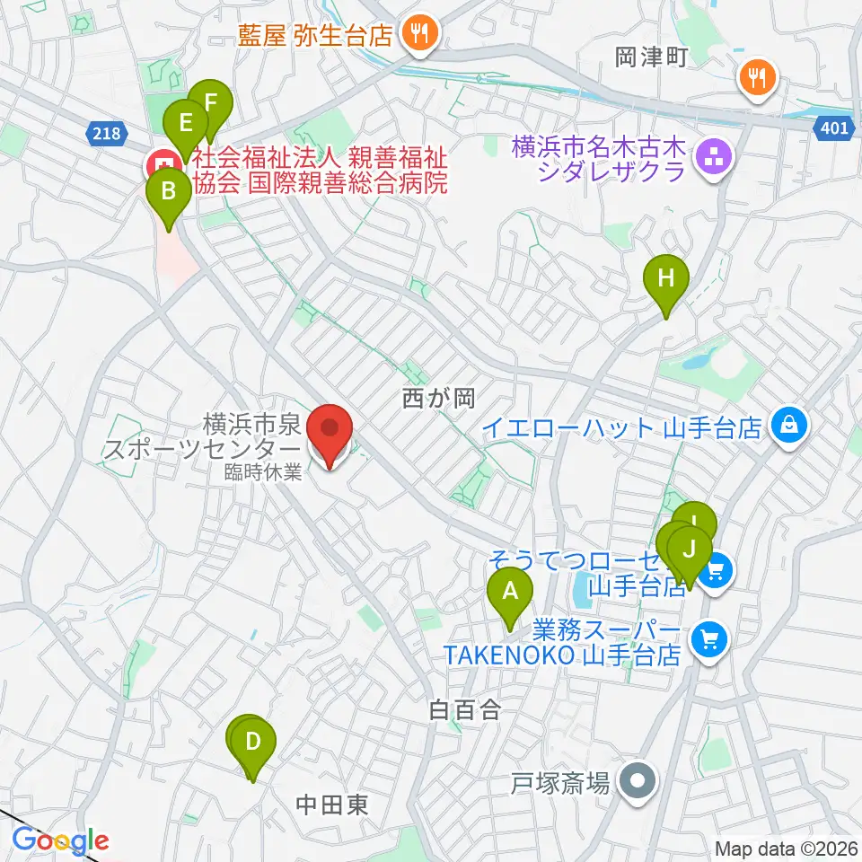 横浜市泉スポーツセンター周辺のファミレス・ファーストフード一覧地図