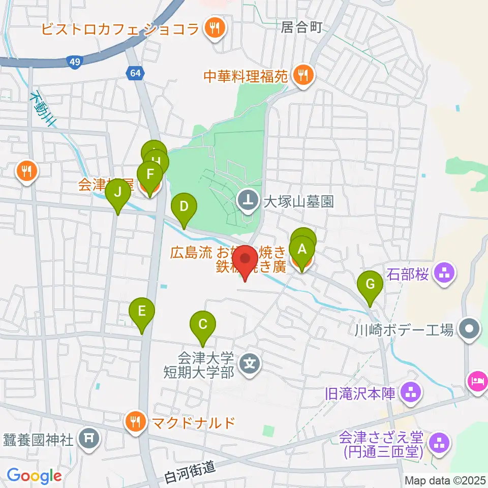会津若松市ふれあい体育館周辺のファミレス・ファーストフード一覧地図