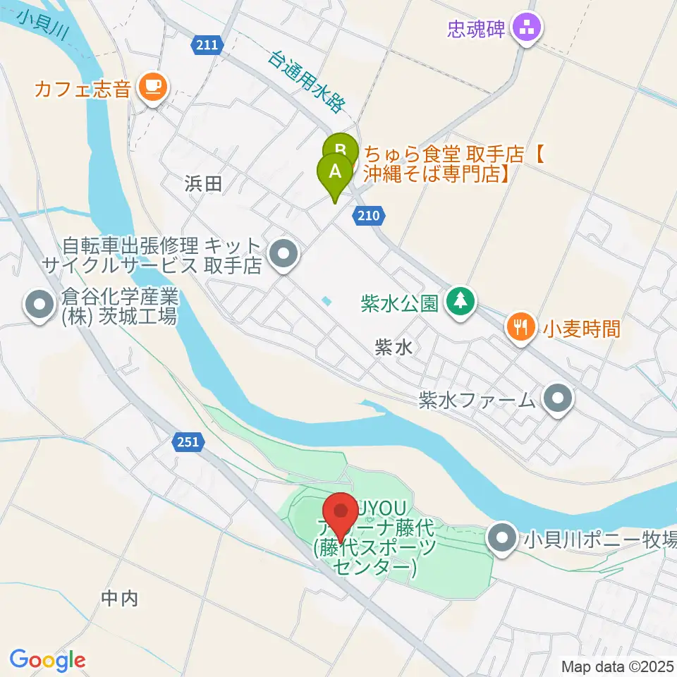 FUYOUアリーナ藤代周辺のファミレス・ファーストフード一覧地図