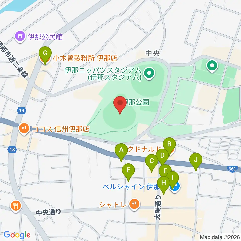 伊那ニッパツ野球場周辺のファミレス・ファーストフード一覧地図