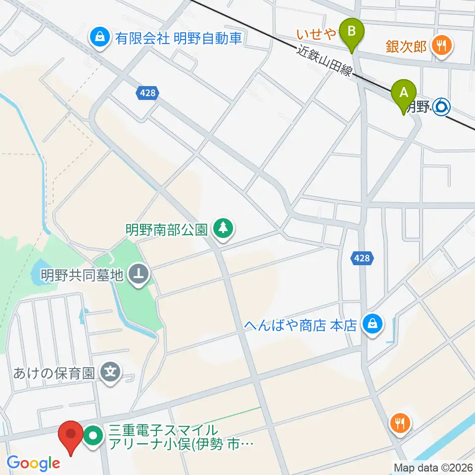 三重電子スマイルアリーナ小俣周辺のファミレス・ファーストフード一覧地図