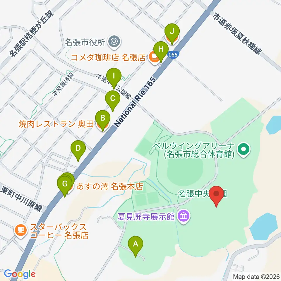 メイハンフィールド周辺のファミレス・ファーストフード一覧地図