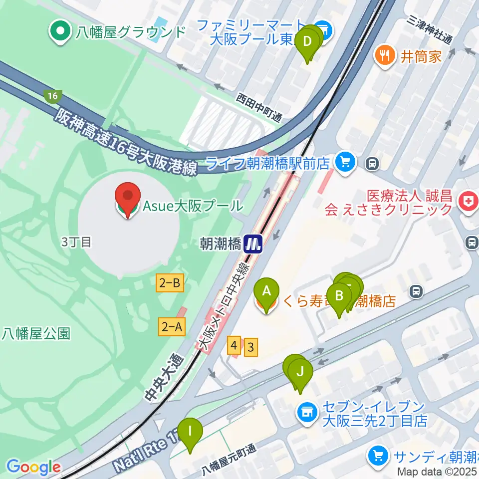 Asue大阪プール周辺のファミレス・ファーストフード一覧地図