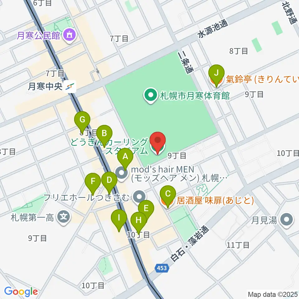 どうぎんカーリングスタジアム周辺のファミレス・ファーストフード一覧地図