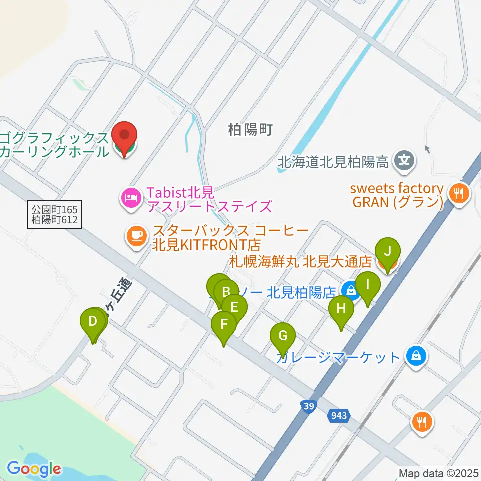 アルゴグラフィックス北見カーリングホール周辺のファミレス・ファーストフード一覧地図