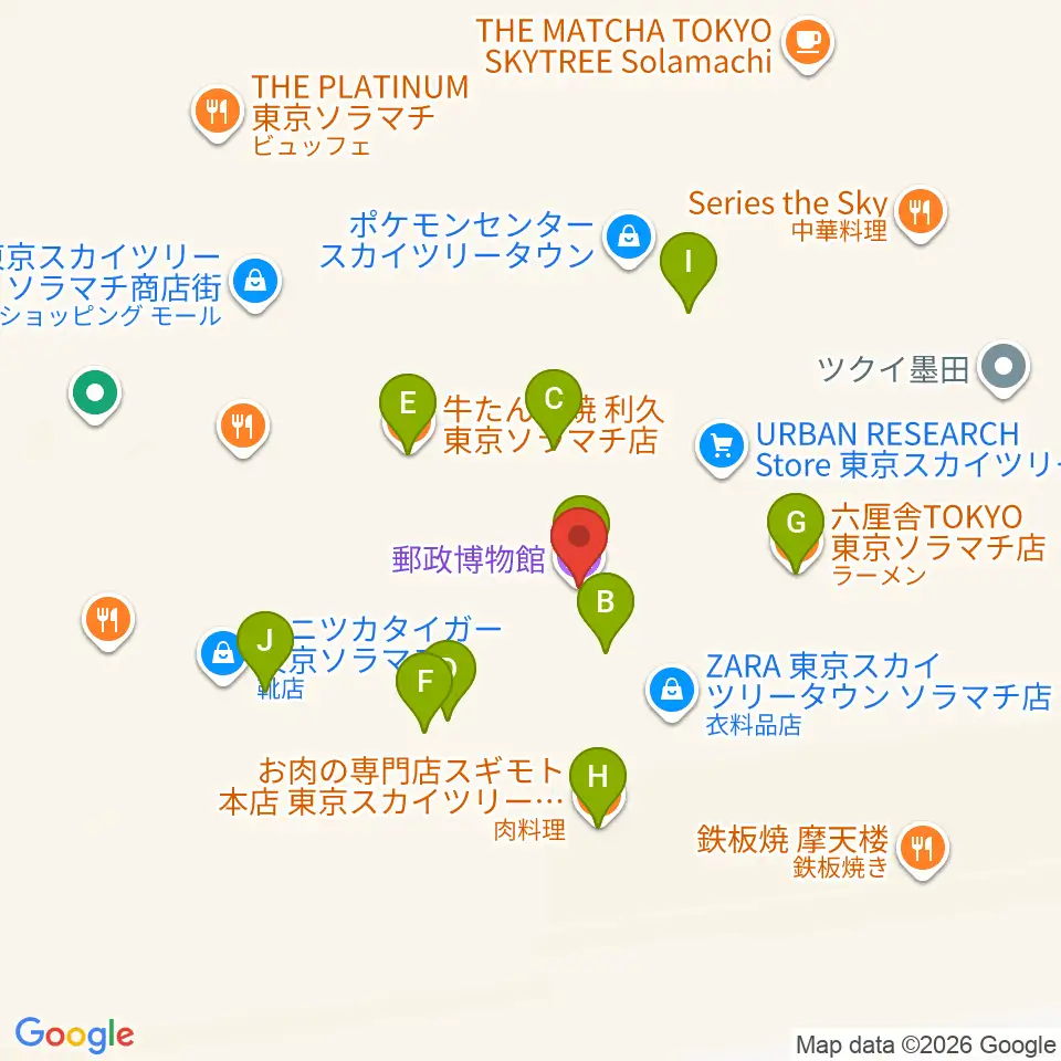 郵政博物館周辺のファミレス・ファーストフード一覧地図
