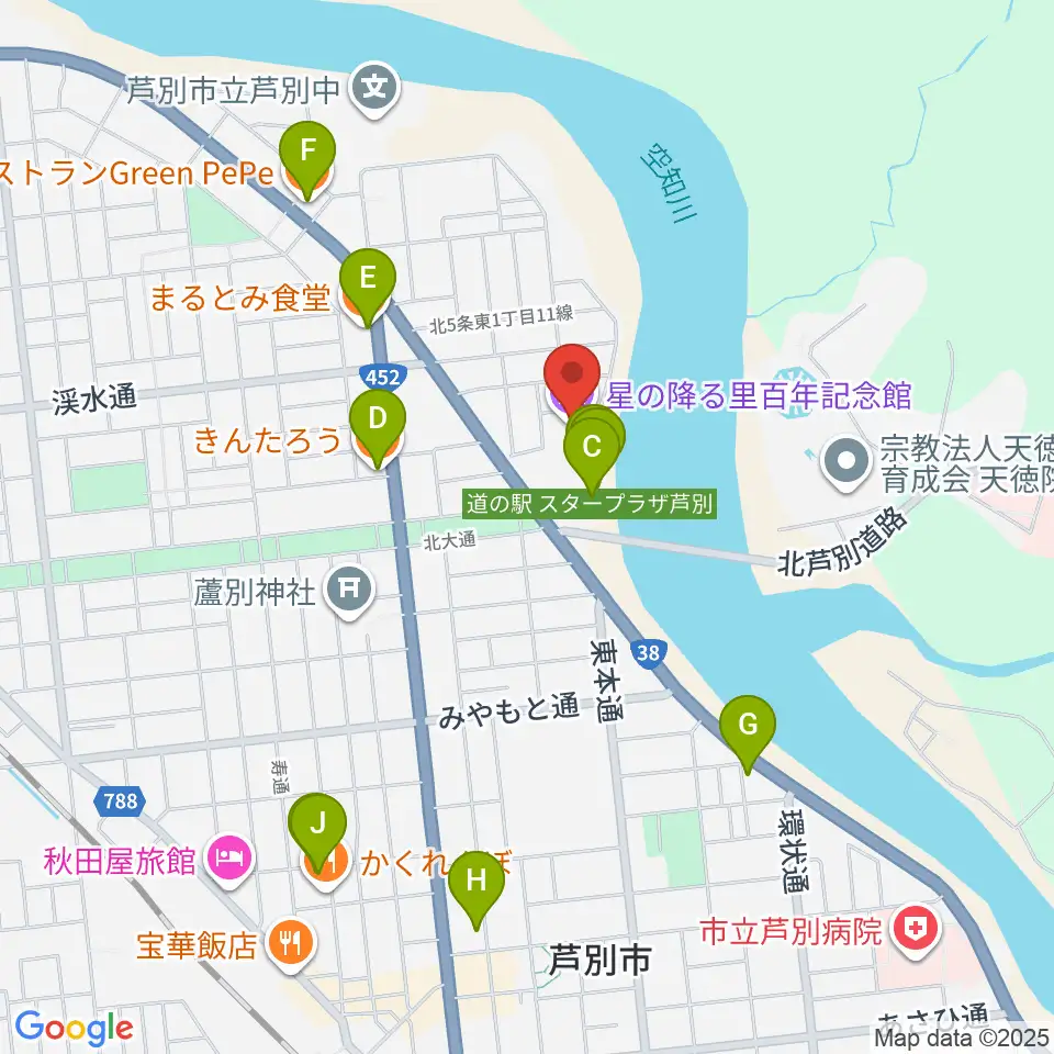 星の降る里百年記念館周辺のファミレス・ファーストフード一覧地図