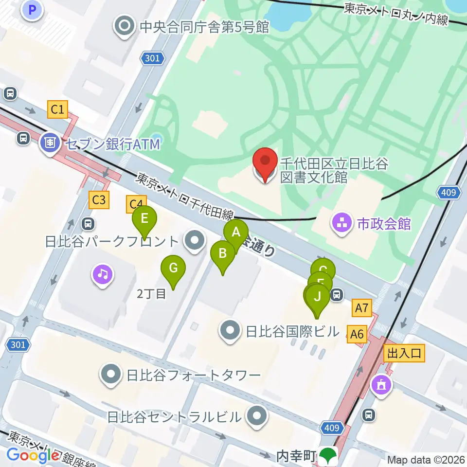 千代田区立日比谷図書文化館周辺のファミレス・ファーストフード一覧地図