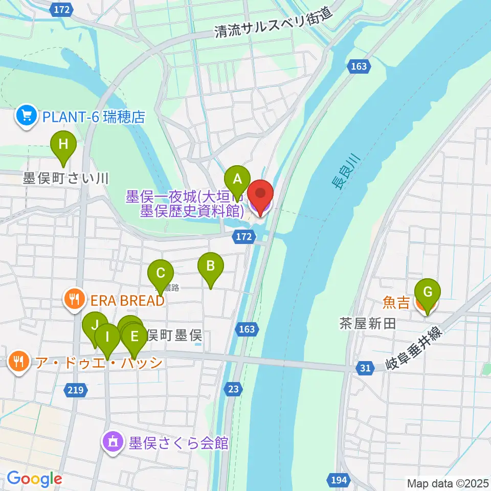 墨俣一夜城(大垣市墨俣歴史資料館)周辺のファミレス・ファーストフード一覧地図