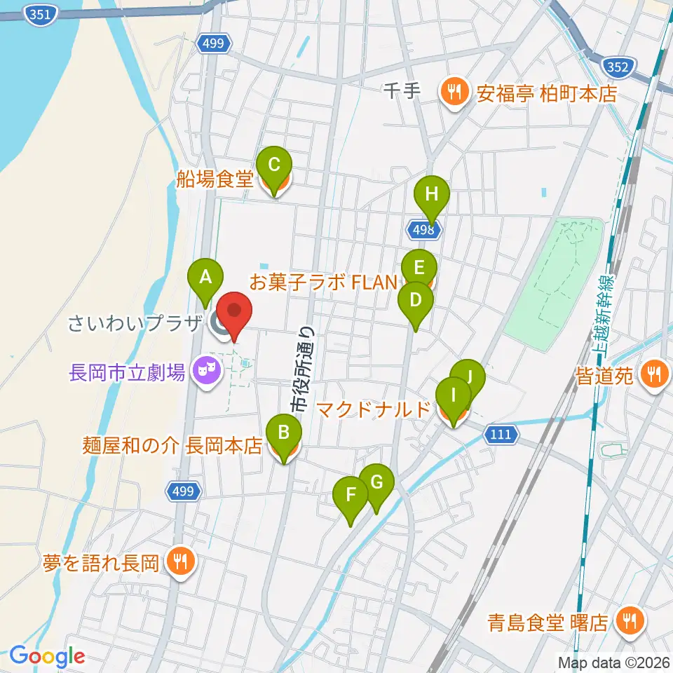 長岡市立科学博物館周辺のファミレス・ファーストフード一覧地図