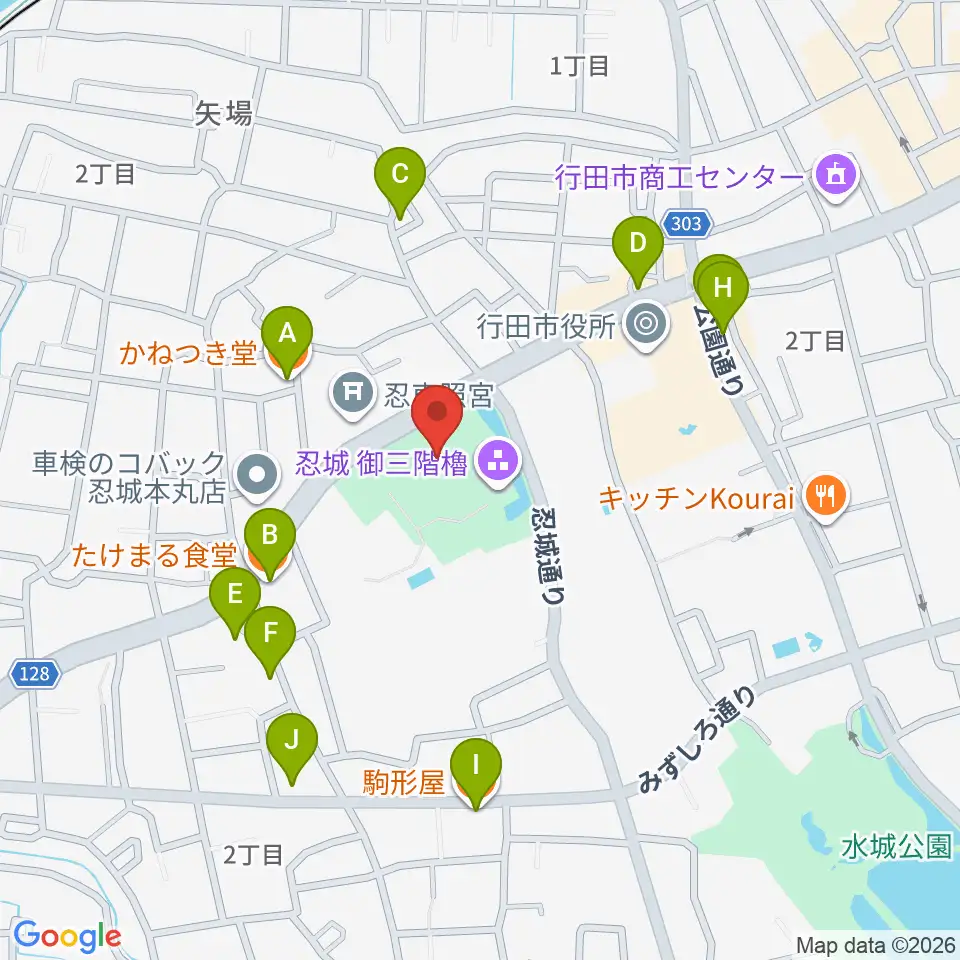 行田市郷土博物館周辺のファミレス・ファーストフード一覧地図