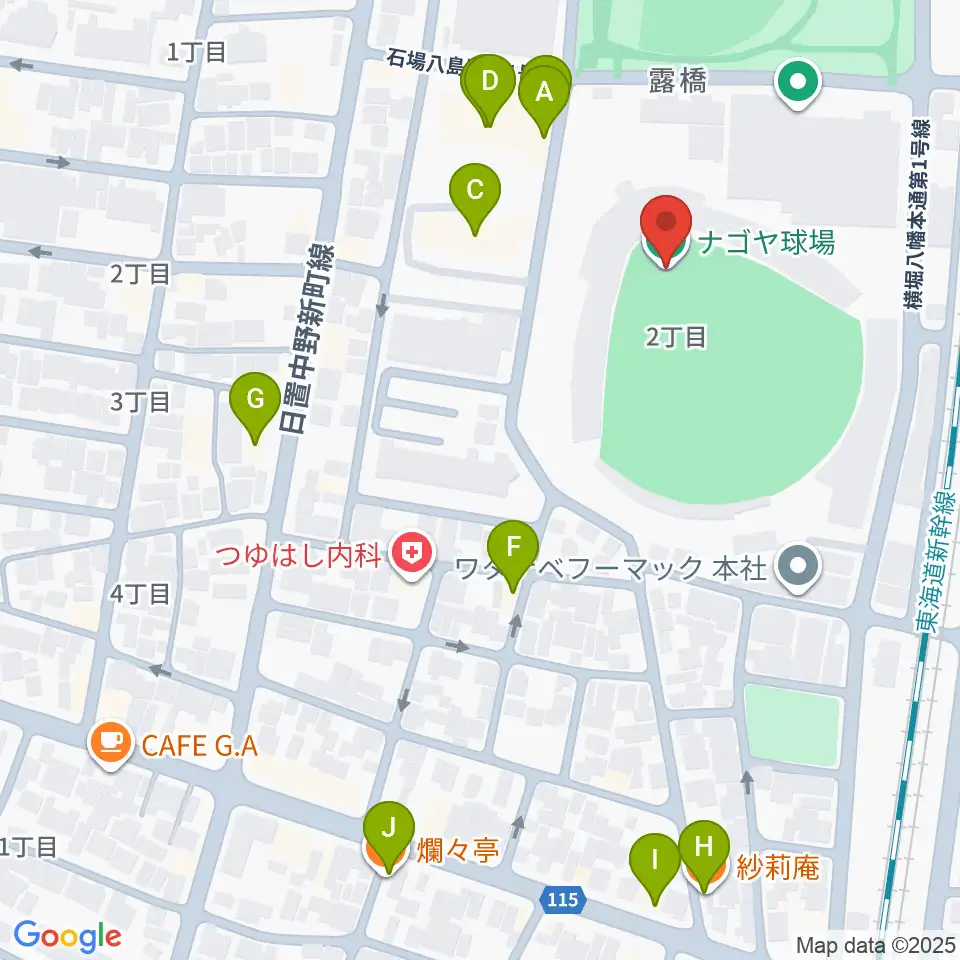ナゴヤ球場周辺のファミレス・ファーストフード一覧地図