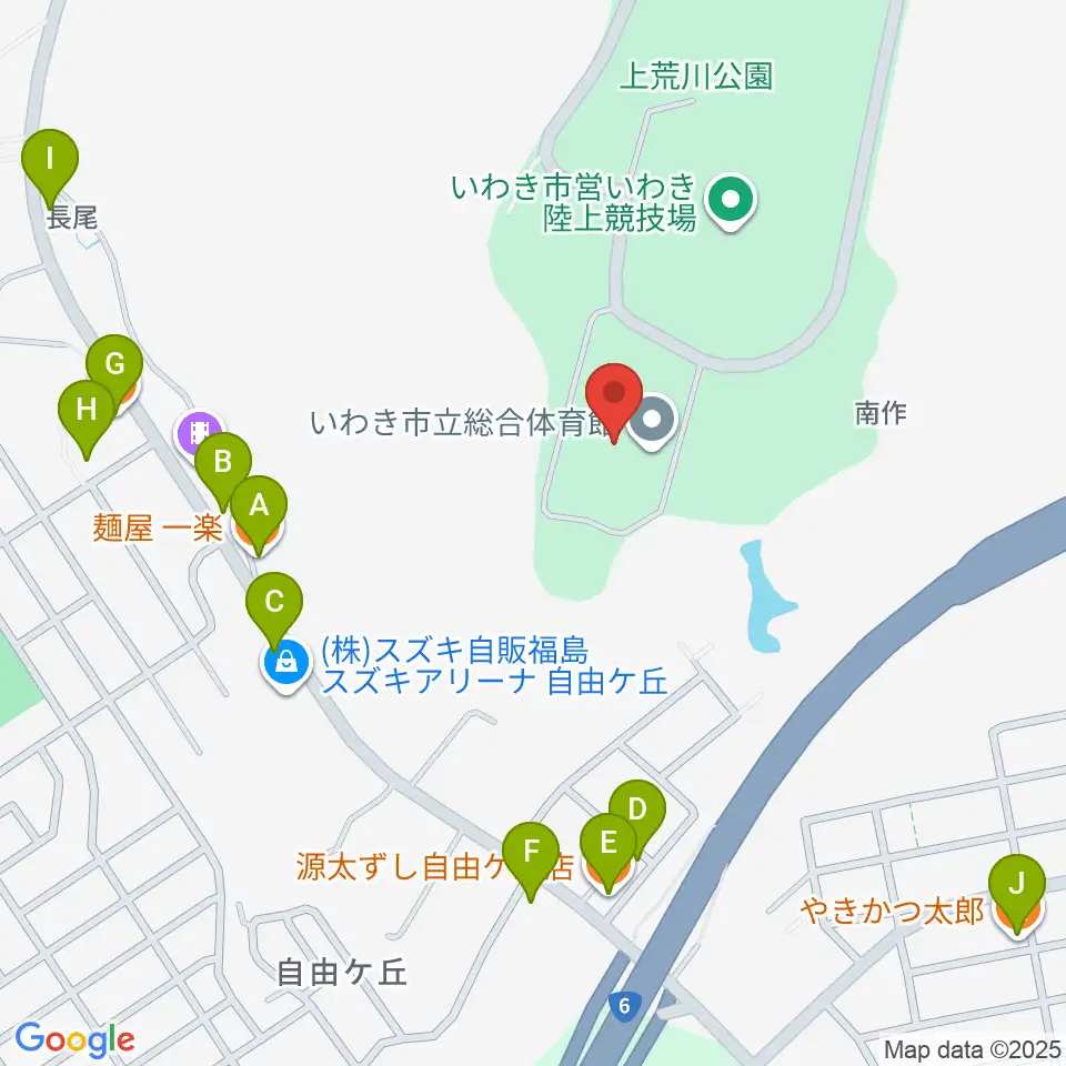 いわき市立総合体育館周辺のファミレス・ファーストフード一覧地図