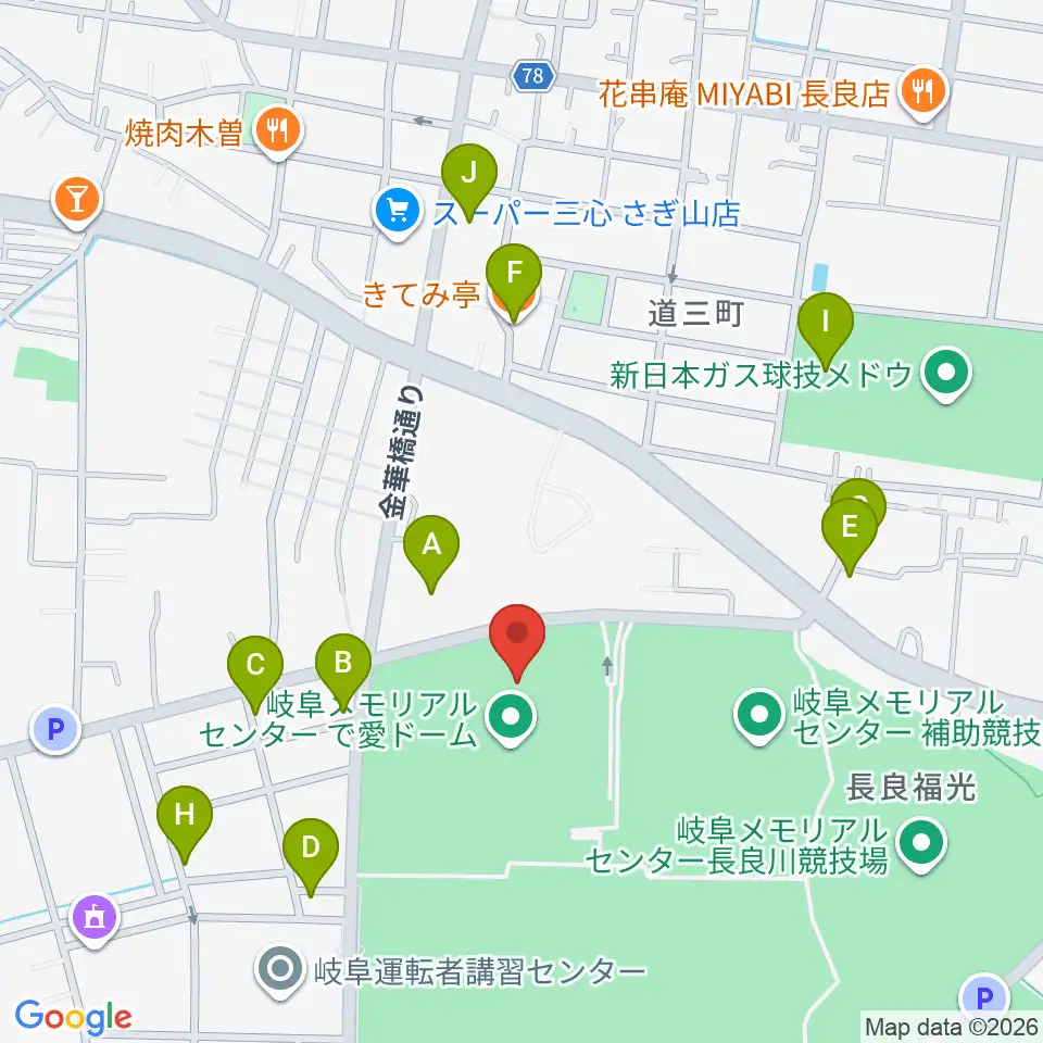 岐阜メモリアルセンターふれ愛ドーム周辺のファミレス・ファーストフード一覧地図