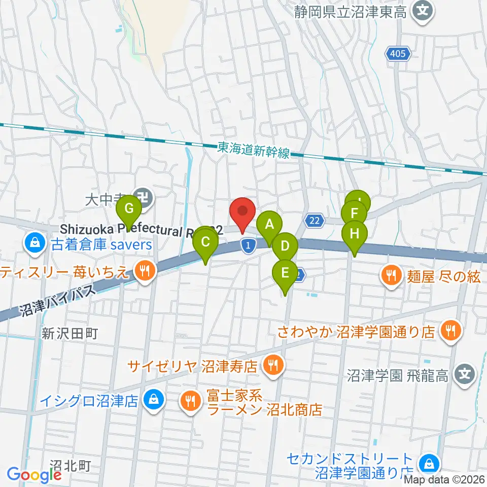 沼津市明治史料館周辺のファミレス・ファーストフード一覧地図