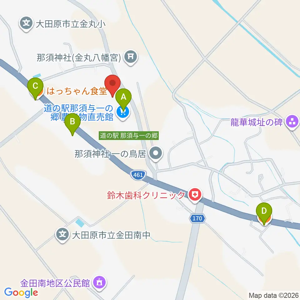 那須与一伝承館周辺のファミレス・ファーストフード一覧地図