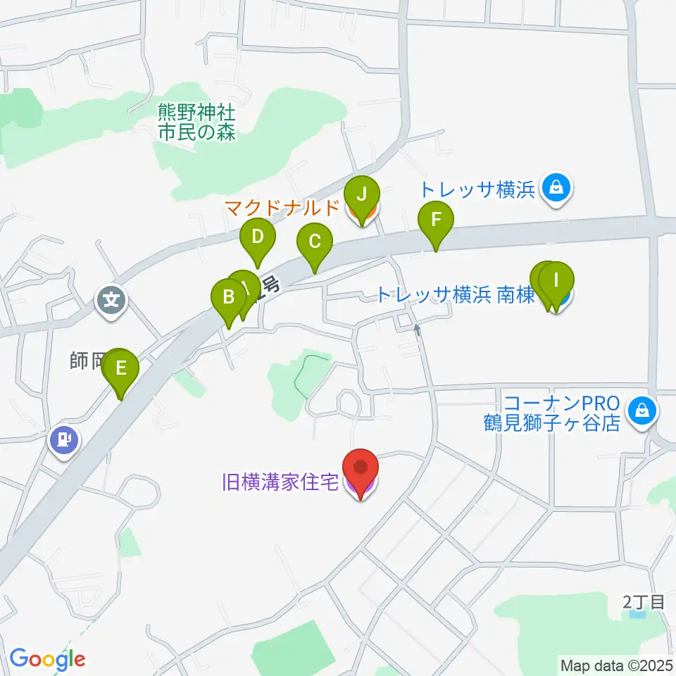 横浜農村生活館みその公園「横溝屋敷」周辺のファミレス・ファーストフード一覧地図