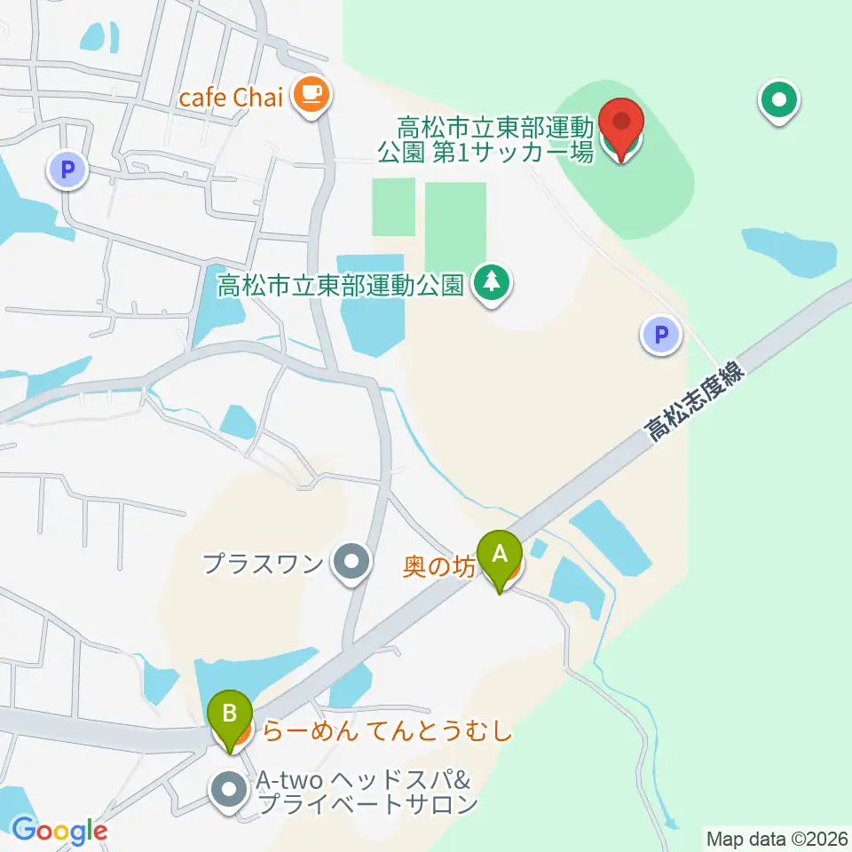 高松市立東部運動公園サッカー場周辺のファミレス・ファーストフード一覧地図