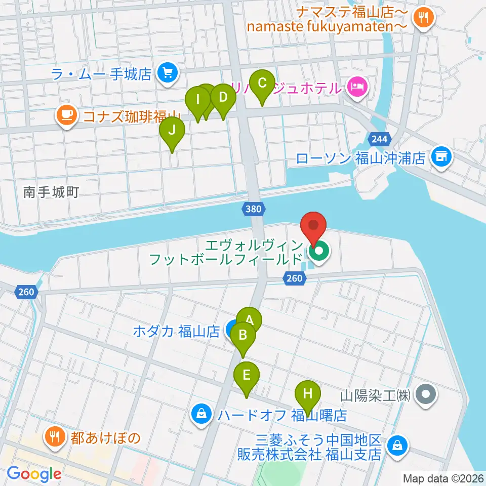 エヴォルヴィンフットボールフィールド周辺のファミレス・ファーストフード一覧地図