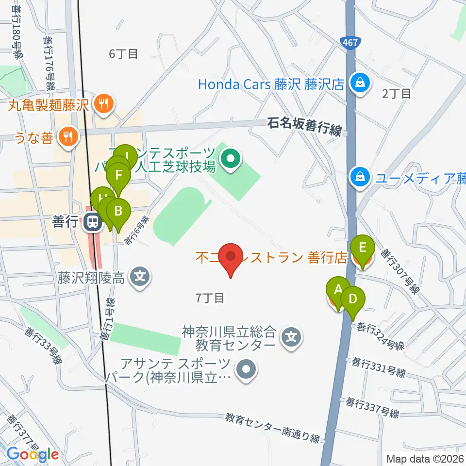 アサンテスポーツパーク陸上競技場周辺のファミレス・ファーストフード一覧地図