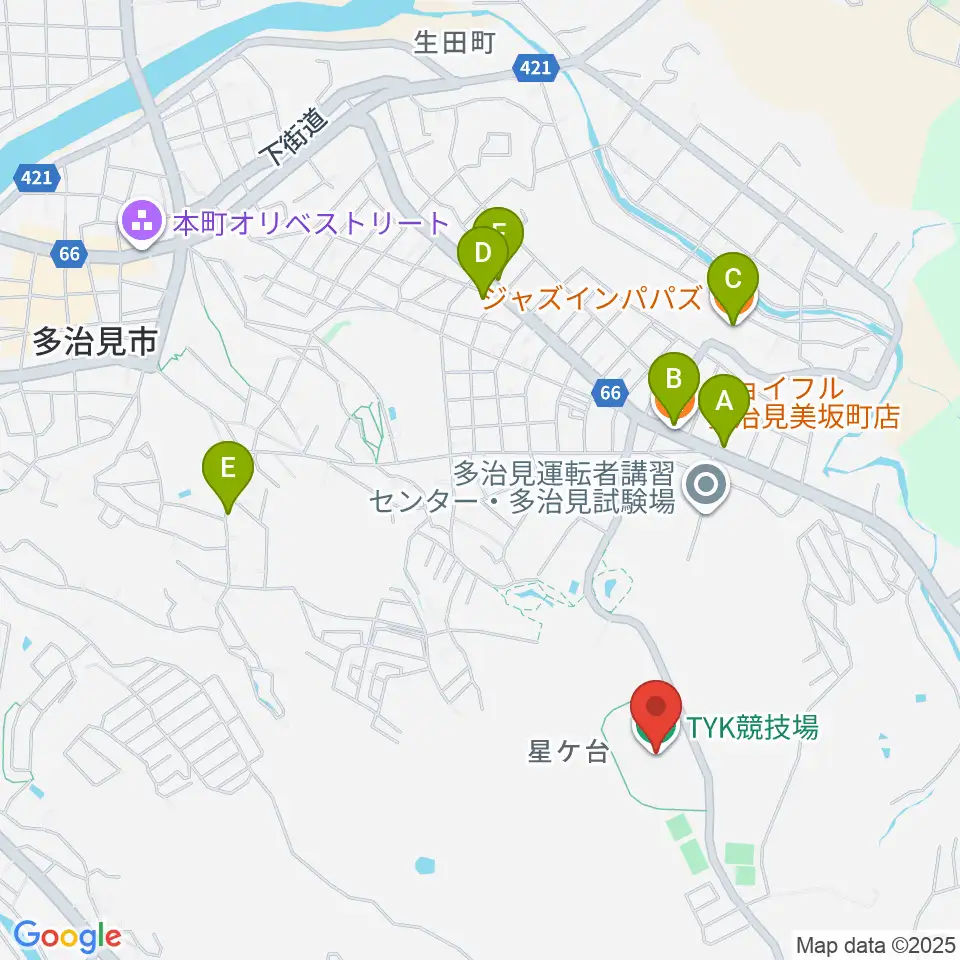 TYK競技場周辺のファミレス・ファーストフード一覧地図