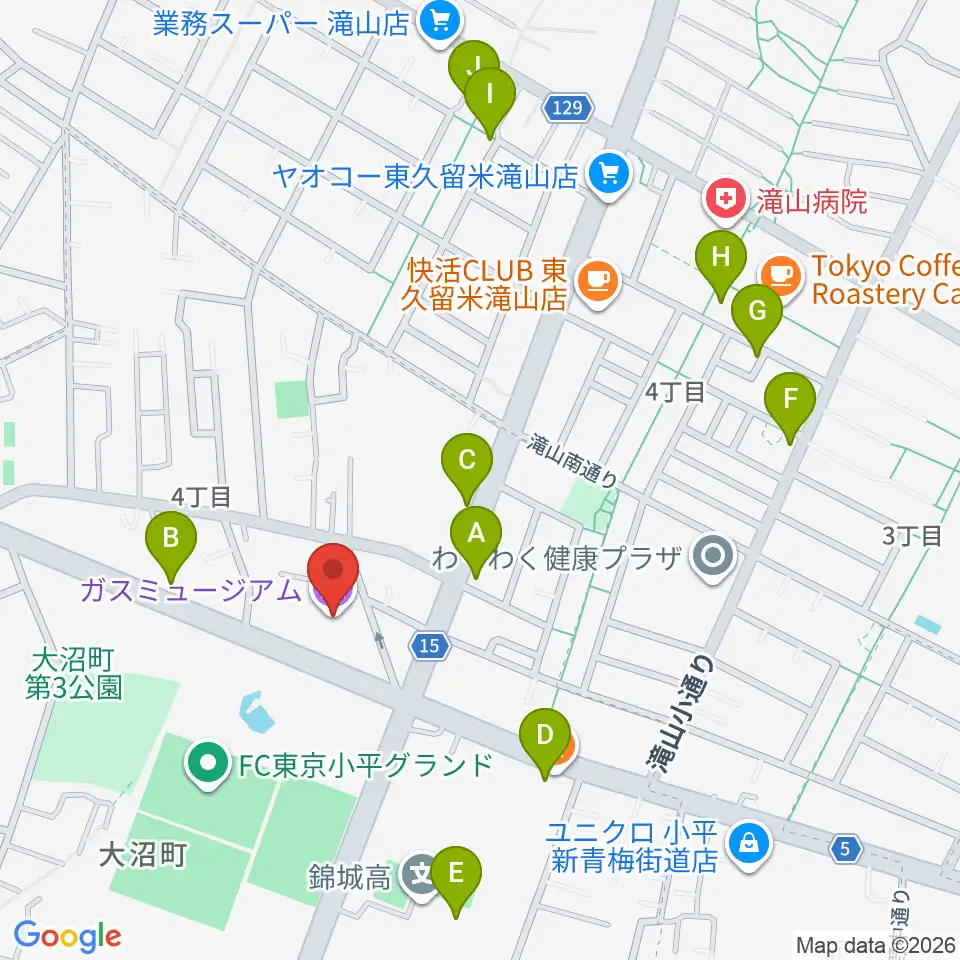 ガスミュージアム周辺のファミレス・ファーストフード一覧地図