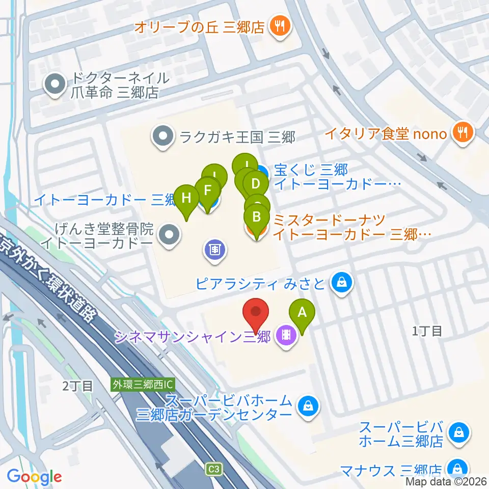 シネマサンシャイン三郷周辺のファミレス・ファーストフード一覧地図