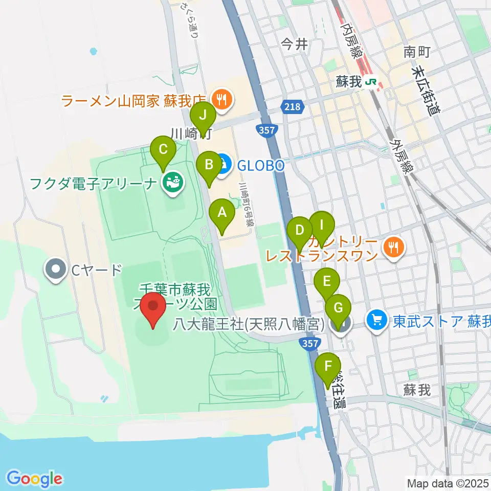 フクダ電子スタジアム周辺のファミレス・ファーストフード一覧地図