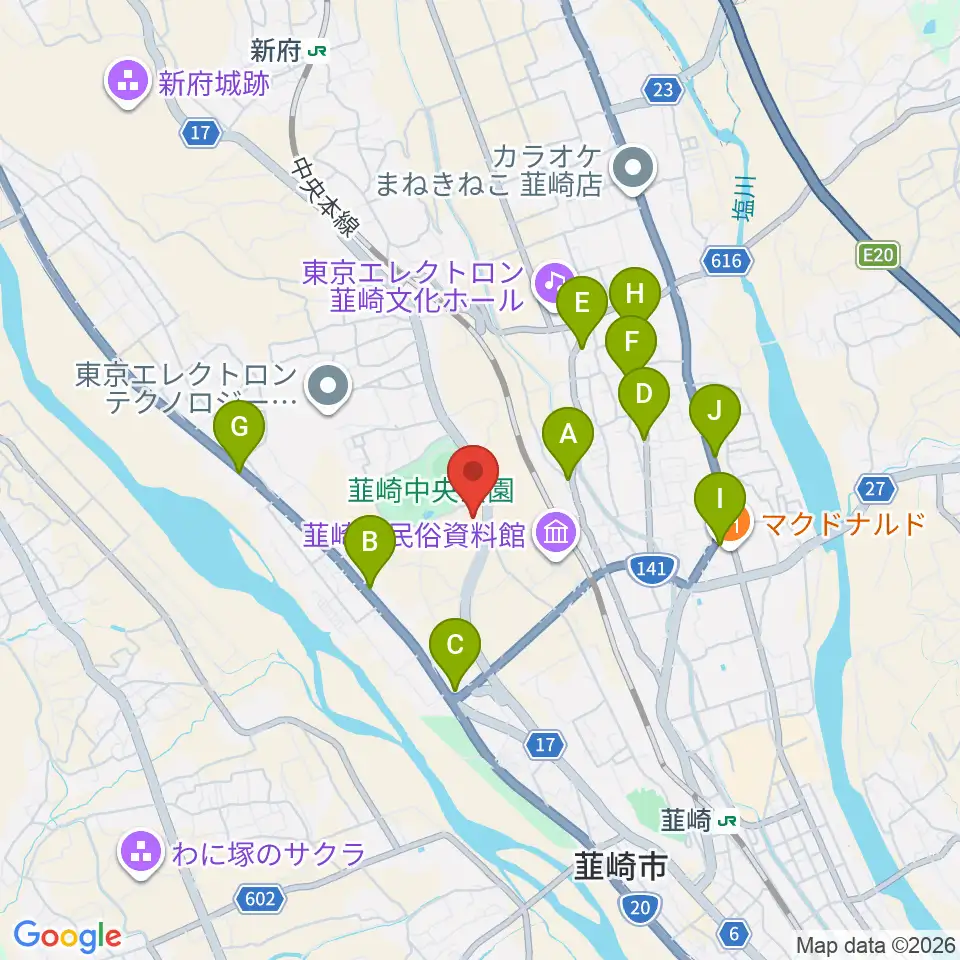 東京エレクトロン 韮崎アリーナ周辺のファミレス・ファーストフード一覧地図