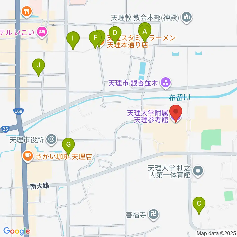 天理大学附属天理参考館周辺のファミレス・ファーストフード一覧地図