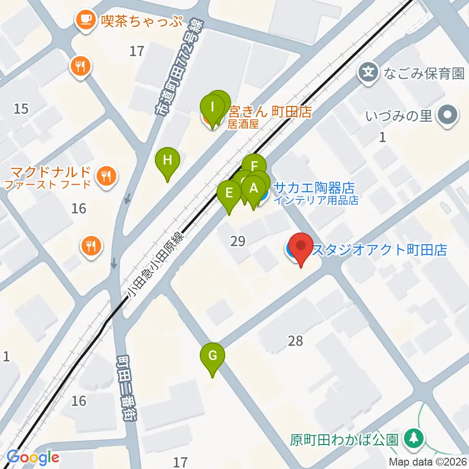 スタジオアクト町田周辺のファミレス・ファーストフード一覧地図