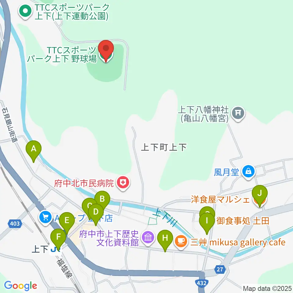 TTCスポーツパーク上下野球場周辺のファミレス・ファーストフード一覧地図