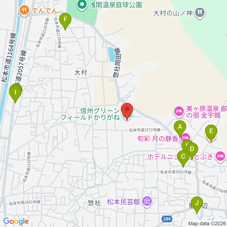 信州グリーンフィールドかりがね周辺のファミレス・ファーストフード一覧地図
