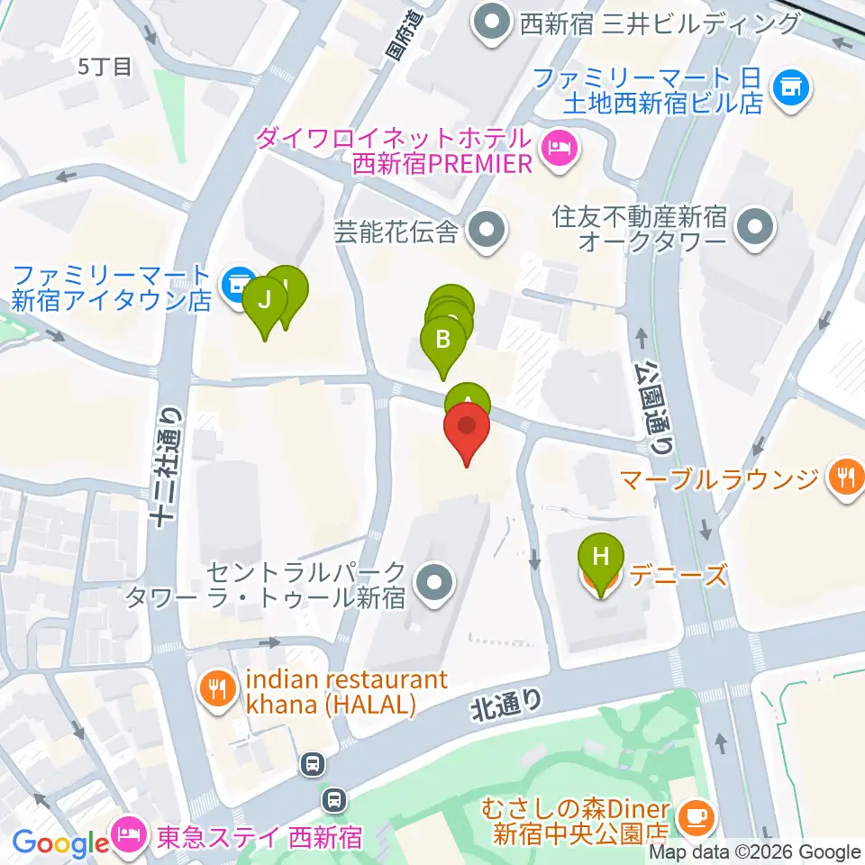 ベルサール新宿セントラルパーク周辺のファミレス・ファーストフード一覧地図