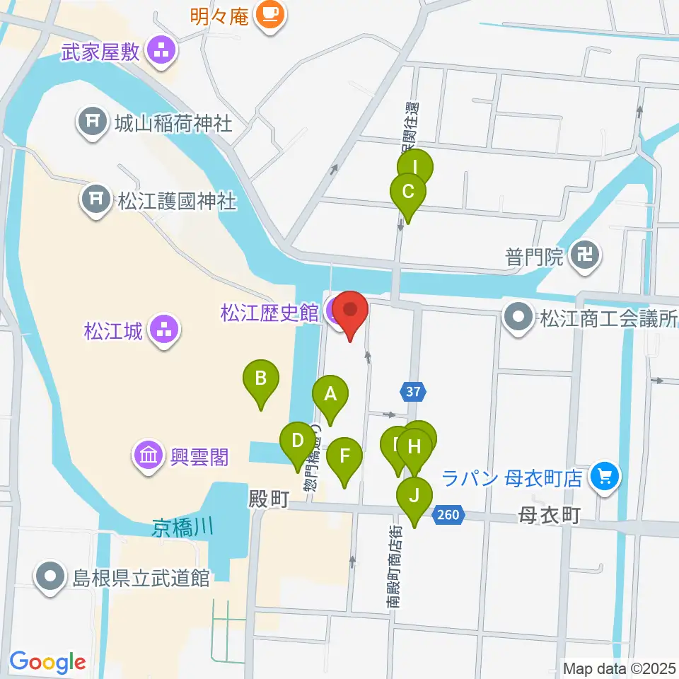 松江歴史館周辺のファミレス・ファーストフード一覧地図